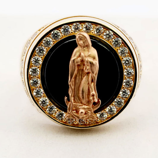 MEN'S 14K VIRGEN DE GUADALUPE WITH / ONIX & ZIRCONIUMS