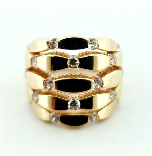 WOMAN'S 14k 3 Bands and stones ring / zircon stones