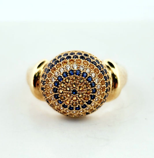 WOMAN'S 18k blue and white Stones dome ring/zircons