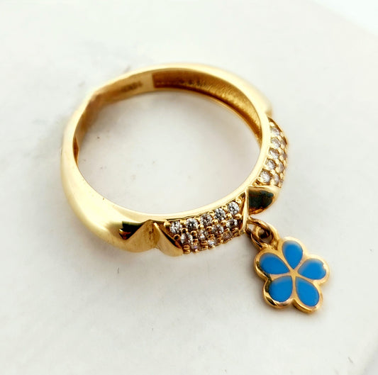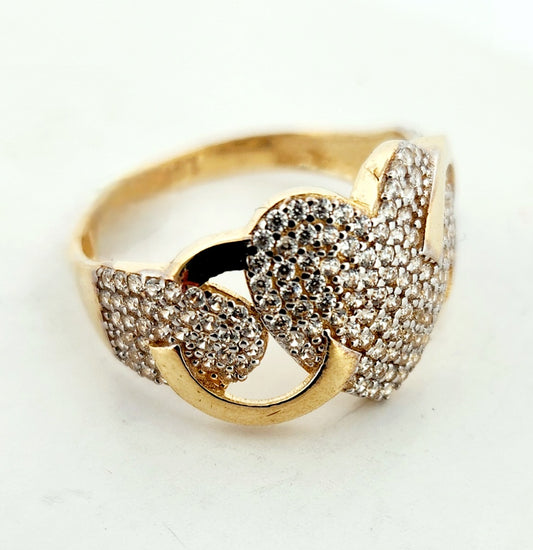 14K WOMEN FLOWER RING WITH/HEART SHAPED ZIRCONIUMS.