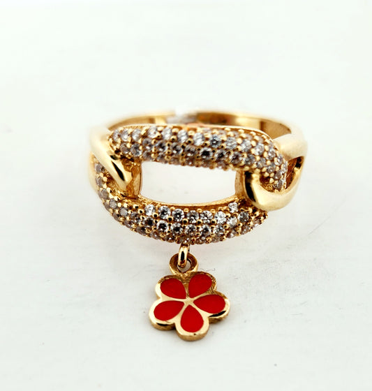 WOMAN'S 18K red hanging eye design ring/zircon stones