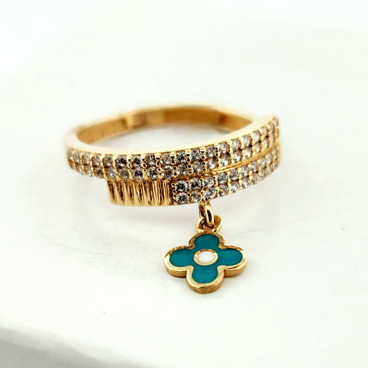 WOMAN'S 18K crossed bands with hanging green flower/zircon stones